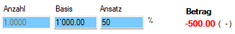 Gesamtprämie CHF 1'000.00, Erfassung der Gesamtprämie, jedoch mit 50%.