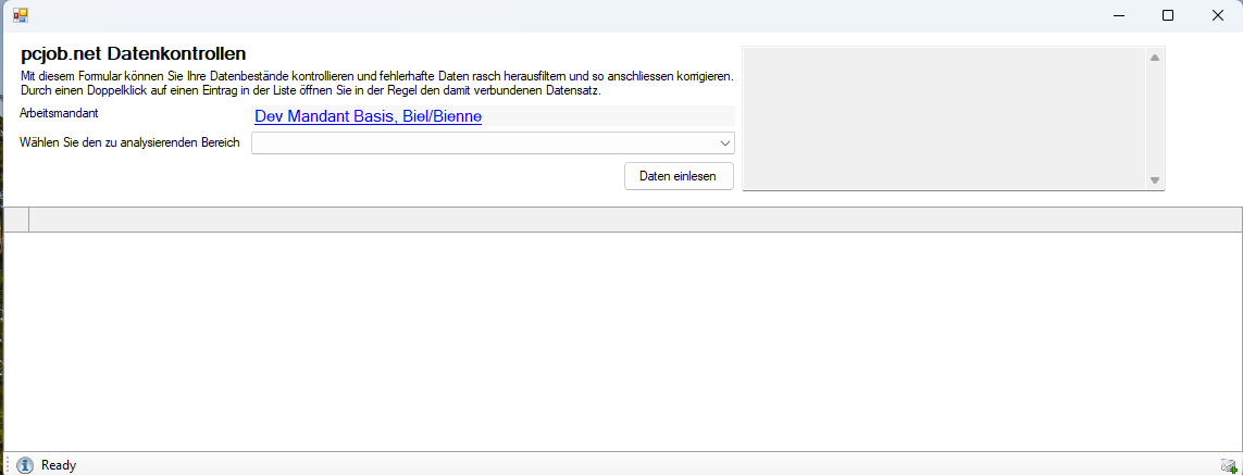 Mit dem Release 2025.100.08.10 im August 2025 haben wir eine neue Maske programmiert, in welcher Datenbestände nach bestimmten Kriterien kontrolliert und korrigiert werden können.