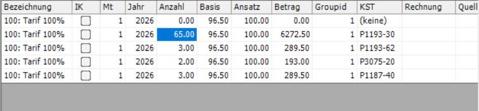 Anschliessend werden die eingelesenen Daten an den geöffneten Rapport übergeben. Die Lohnart 100 wird auch gleich gespeichert.