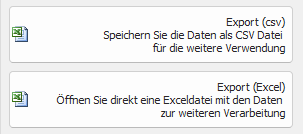 Über Export (CSV) oder (Excel) können Sie den gesamten Datenbestand in das entsprechende Format exportieren.