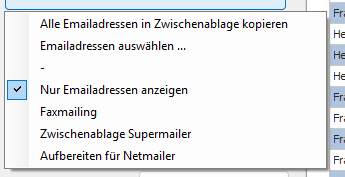 Schaltet einen Zwischendialog, sodass Sie wählen können, welche Emailadressen Sie in die Zwischenablage übernehmen möchten.